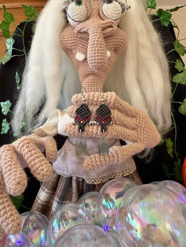 Les boucles d'oreilles Chauve souris sont tissées avec du fil ciré Linhasita de 1mm. Les boucles sont en acier inoxydable.