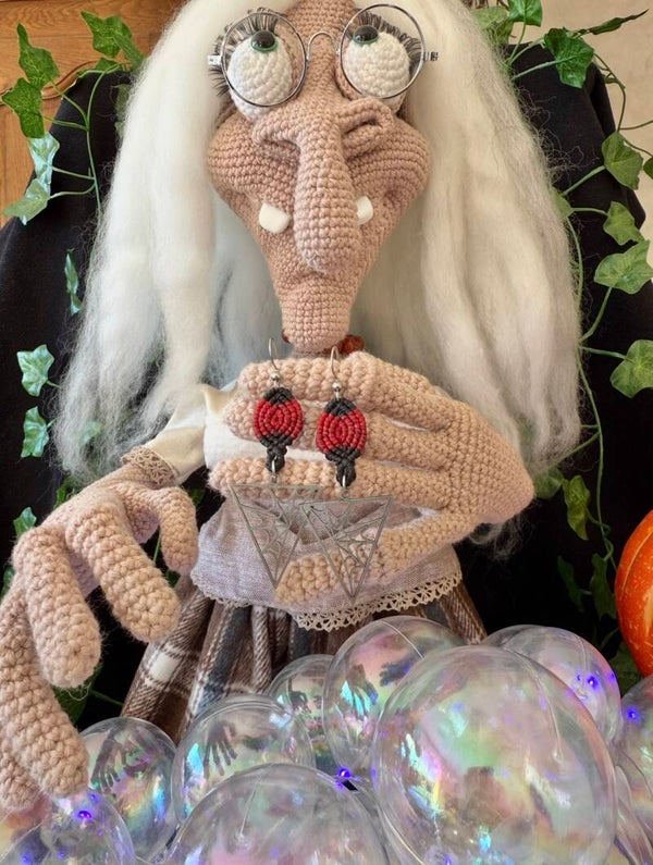 Les boucles d'oreilles Toile d'araignée sont tissées avec du fil ciré Linhasita de 1mm. Les boucles sont en acier inoxydable.