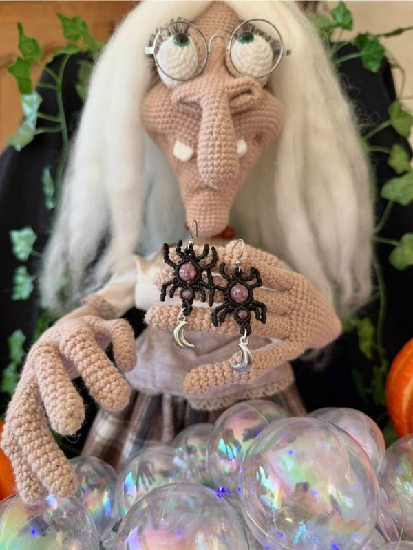 Les boucles d'oreilles Araignée et Lépidolite sont tissées avec du fil ciré Linhasita de 1mm. Les boucles sont en acier inoxydable.