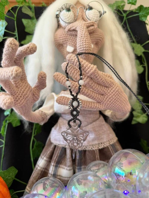 Le collier papillon est tissé avec du fil ciré Linhasita de 1 mm.